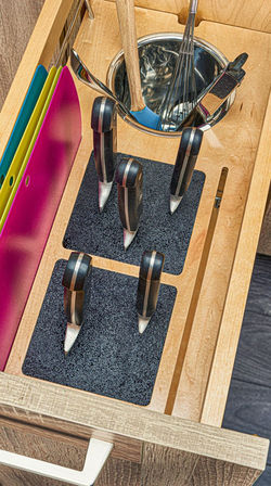 ![]() Small Trash Drawer | ![]() Utensil Pullout | ![]() Utensil Pullout with Knife Upgrade |